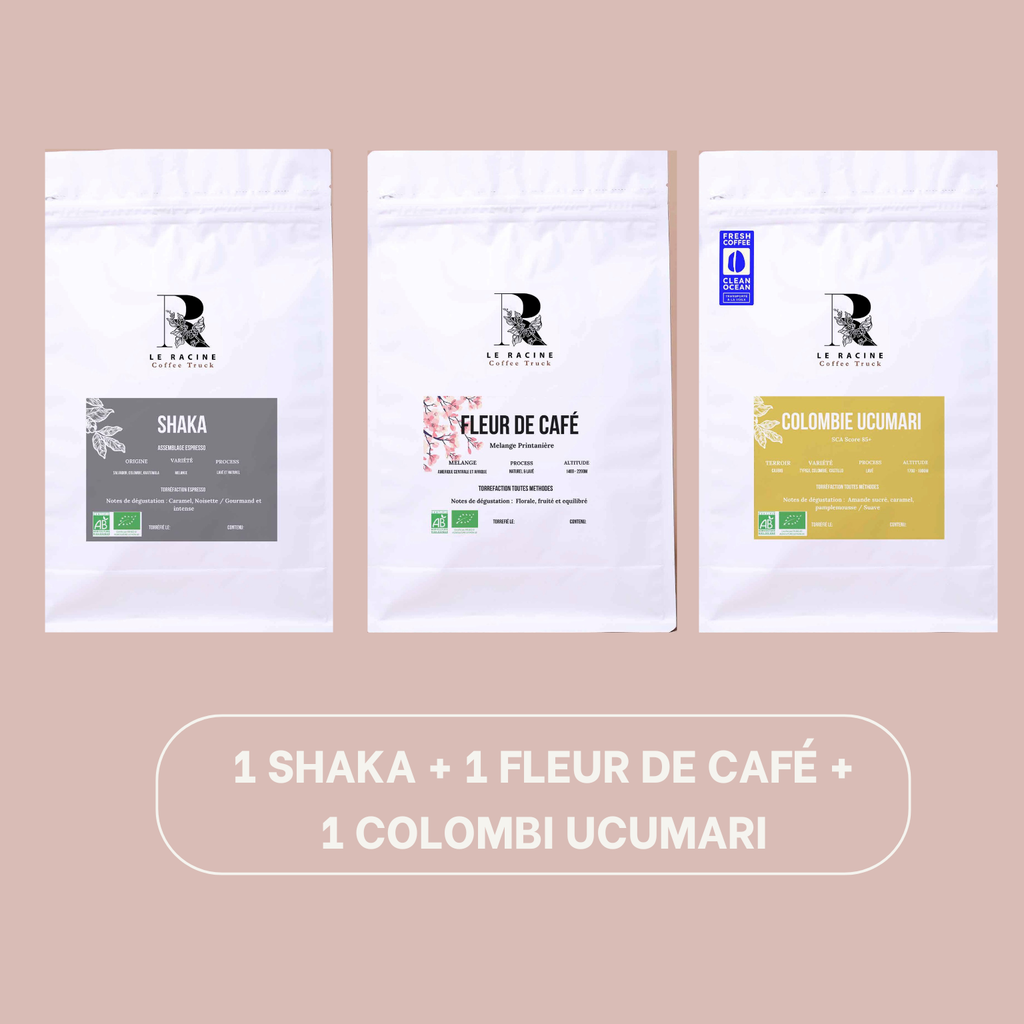 Pack Découverte – 3 cafés de spécialité bio (3 × 250 g –15%)